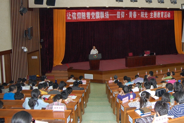 5月10日,由理科学部协同组主办,化工与环境学院承办的“信仰·青春·阳光”主题讲座在中心教学楼报告厅拉开帷幕。全国优秀共产党员叶如陵应邀做了题为“让信仰随着党旗飘扬”的主题讲座。校团委副书记周明宇、理科学部各学院副书记、副院长,以及材料、化工、生命、数学、物理、化学6个学院的党员和积极分子代表共500人一同参加。