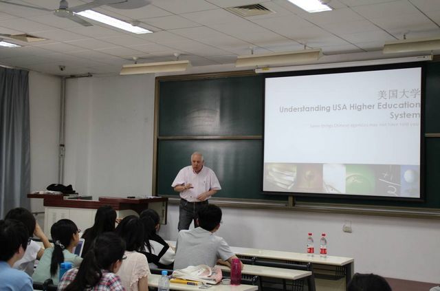2013年5月14日下午3时,来自美国新泽西州Seton Hall University的高等教育专家Joseph Stetar教授应北理工管理与经济学院邀请,来到德赢AC米兰中国官方网站良乡校区,以“US Higher Education in the Eyes of an American Scholar: Something Chinese agencies may never have told you”为题,与经管专业低年级本科生分享了他眼中的美国高等教育。此次讲座旨在帮助准备出国留学深造的同学,更真实、更直观的了解美国大学教育情况,展现给学生一个国内留学中介从未告诉过他们的世界,为学子们的出国求学之路奠定了更为牢固的基石,在实现学子们的个人理想追求的道路上迈出一大步。