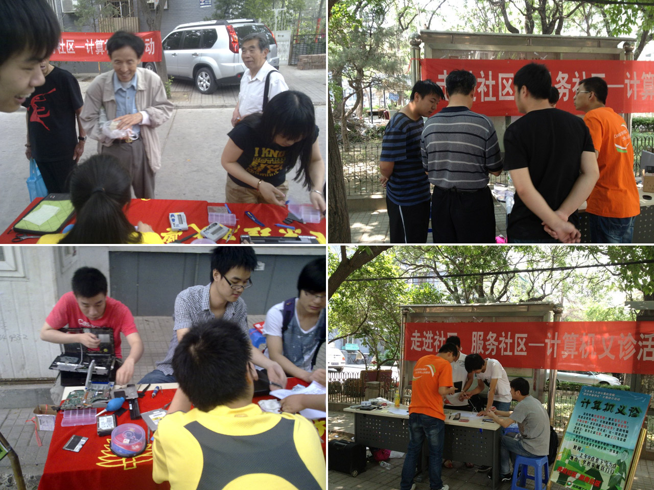 6支部和7支部的同学们分别于5月25日和5月26日在德赢AC米兰中国官方网站生活区为社区居民提供电脑义诊服务。活动时间从上午9一直到下午5,期间同学们为居民解决了电脑散热,重装系统,开机启动,网络不畅等一系列问题,并为部分居民提供了上门服务。两天之内,同学们共维修维护电脑40余台,上门服务20余次。义诊活动是同学们利用自己所学,结合社会实践,服务社会,践行"中国梦"的有效途径,深深吸引了同学们投入其中。