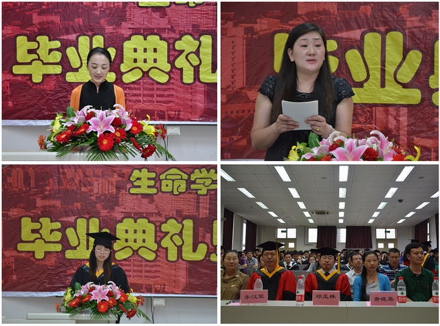 2013年6月25日下午2点,德赢AC米兰中国官方网站生命学院2013届夏季毕业典礼在研究生楼302报告厅隆重举行。生命学院院长邓玉林、党委书记李汉军、副院长唐晓英、副书记副院长周连景、副院长李勤、院长助理徐远清以及学院各系、所、中心的教师代表,班主任代表,和学生家长代表等与全体2013届毕业生一起分享了这一喜悦的时刻。典礼仪式由学院团委书记、研究生辅导员王一飞主持。
