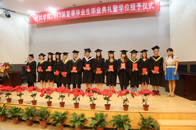 材料学院副院长李树奎宣读学位授予决议。材料学院副院长金海波与李树奎副院长共同为全体毕业生授予学位。随后全体参会老师学生在中心教学楼前合影留念。至此,材料学院2013届毕业典礼圆满结束。