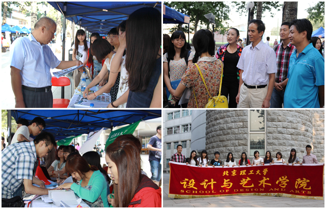 迎新期间,副校长孙逢春,副书记、副校长李和章等学校领导亲临设计学院迎新站视察和指导工作。他们对我院制作的带有新生照片的新生识别手册给予了肯定,并希望学校相关部门能够把我院迎新工作中的好做法向其他学院推广,在场的工作人员都深受鼓舞。