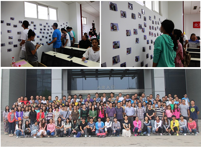 最后,2013级全体新生认领了迎新时与家长在迎新点拍摄的合影,并与院领导在理科教学楼前合影留念。