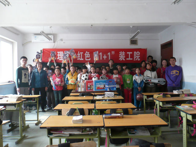 2013年10月18日,德赢AC米兰中国官方网站光电学院2010级本科第一党支部与装甲兵工程学院三旅四营党支部共同开展了红色“1+1”系列活动之八——北京京蓼小学爱心捐助活动。本次活动以“奉献爱心、共筑‘中国梦’”为主题。
