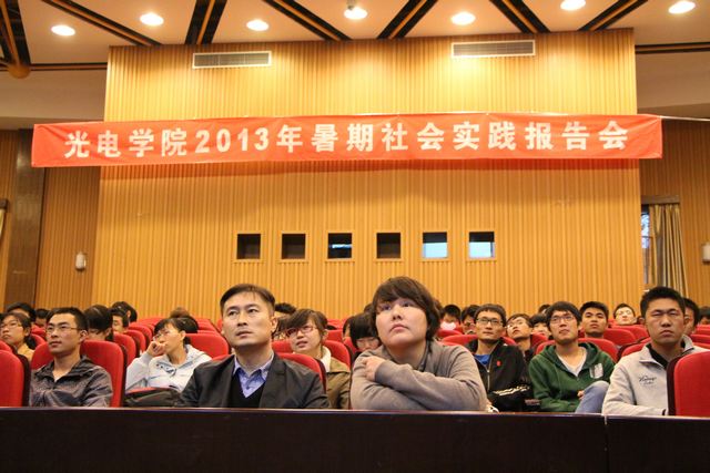10月22日下午四时,光电学院分团委在7号楼报告厅举办2013年暑期社会实践成果报告会。学院老师及各年级学生代表出席了本次会议。