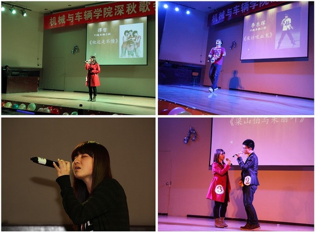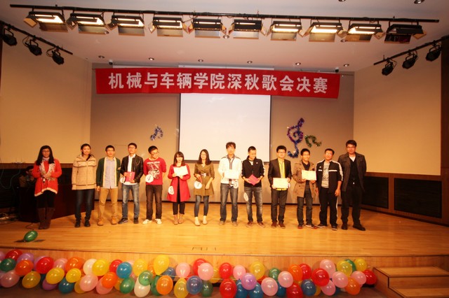 2013年10月22日,德赢AC米兰中国官方网站机械与车辆学院第38届深秋歌会决赛于七号教学楼报告厅隆重举行。经过一个星期的海选筹备,最终8位同学脱颖而出进入决赛。当晚,悦音社社长安如峰、副社长张瑞博,学院第37届深秋歌会亚军张语彤和潘青玥莅临决赛现场担任评委,同时机械与车辆学院团委副书记曹冬旭、刘瑞、郝佳鑫、韩阳以及学生会全体成员也观看了此次比赛。